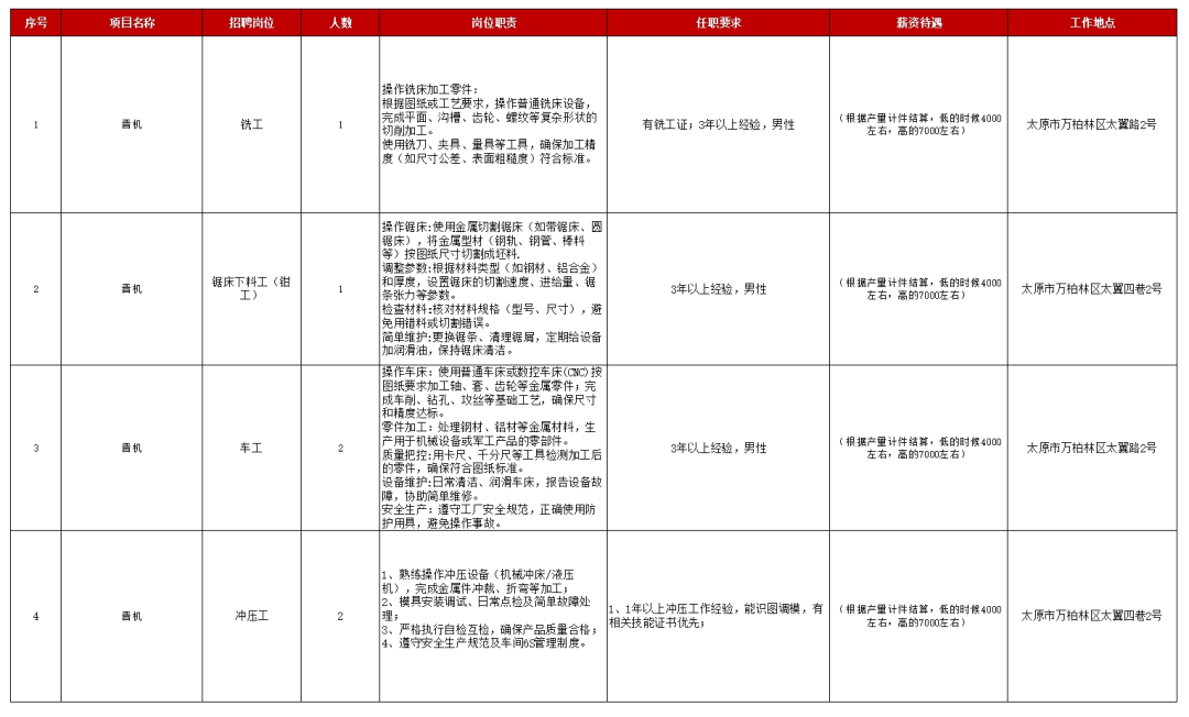 晉機(jī)集團(tuán)因工作需要,由山西晉鑫仁和人力資源管理有限公司公開招聘數(shù)名勞務(wù)外包工作人員,具體公告如下: